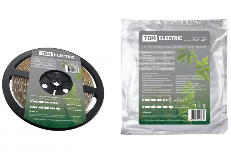 Лента светодиодная SMD5050 14,4Вт 12В 6400К IP54 5м | SQ0331-0107 | TDM