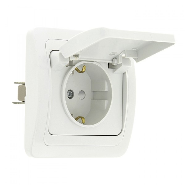 Лондон Розетка 1-местная с заземлением и крышкой 16А белая с защ. штор. EKF PROxima | EER16-029-100 | EKF