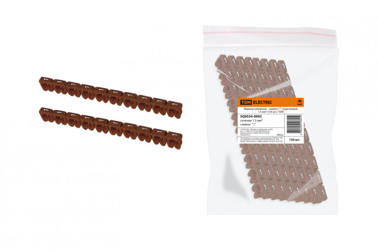 Маркер наборный - символ "1" коричневый 1,5 мм2 (150 шт.) | SQ0534-0002 | TDM
