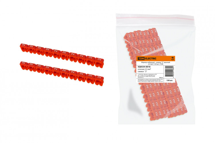Маркер наборный - символ "2" красный 2,5 мм2 (150 шт.) | SQ0534-0018 | TDM