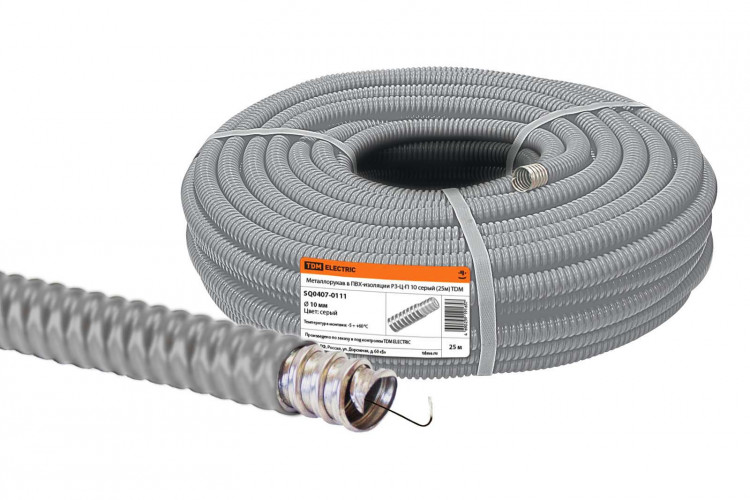 Металлорукав в ПВХ-изоляции РЗ-Ц-П 10 серый (25м) | SQ0407-0111 | TDM