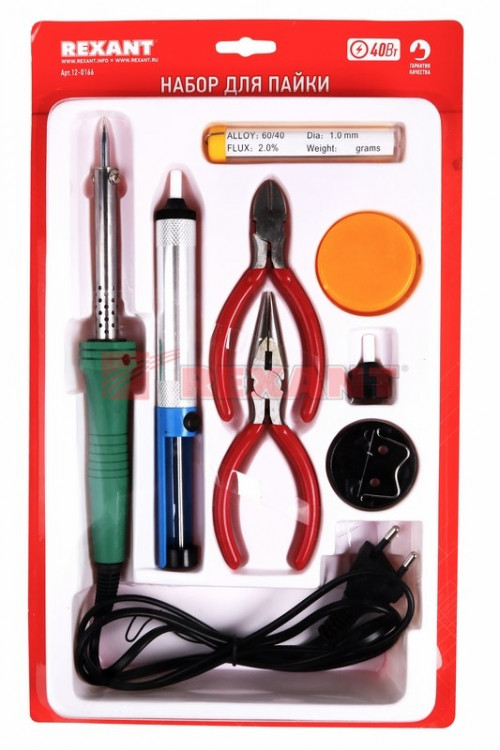 Набор для пайки №13 (паяльник 30Вт, подставка, канифоль, припой, бокорезы, тонкогубцы) (TL-1013) | 12-0166 | REXANT