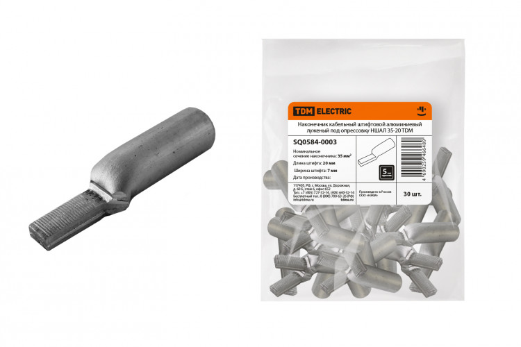 Наконечник кабельный штифтовой алюминиевый луженый под опрессовку НШАЛ 35-20 | SQ0584-0003 | TDM