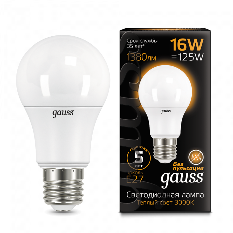 Образец Лампа светодиодная LED 16Вт Е27 A60 3000К | 102502116 | Gauss