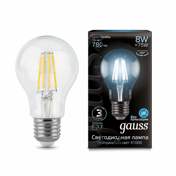 Образец Лампа светодиодная LED 8Вт E27 220В 4100К A60 | 102802208 | Gauss