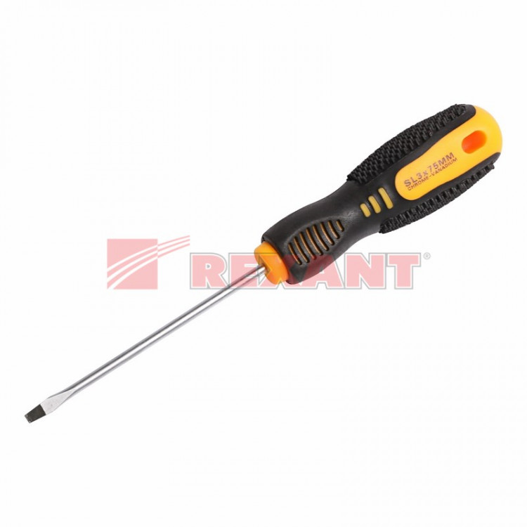 Отвертка шлицевая SL 3х75 мм, двухкомпонентная рукоятка | 12-4721 | REXANT