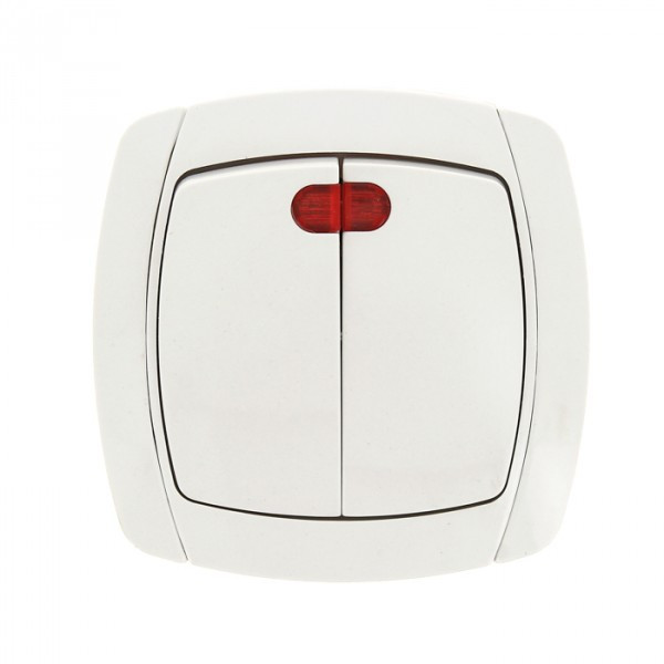 Париж Выключатель 2-клавишный с индикатором 10А белый EKF Simple | ESV10-123-10 | EKF