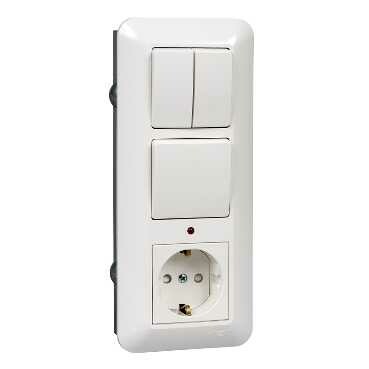 ПРИМА С/У Белый Блок: Розетка + Выключатель 1-кл. с подсветкой + Выключатель 2-кл. (индивид.упак.) | BK2VR-007A-BI | Schneider Electric