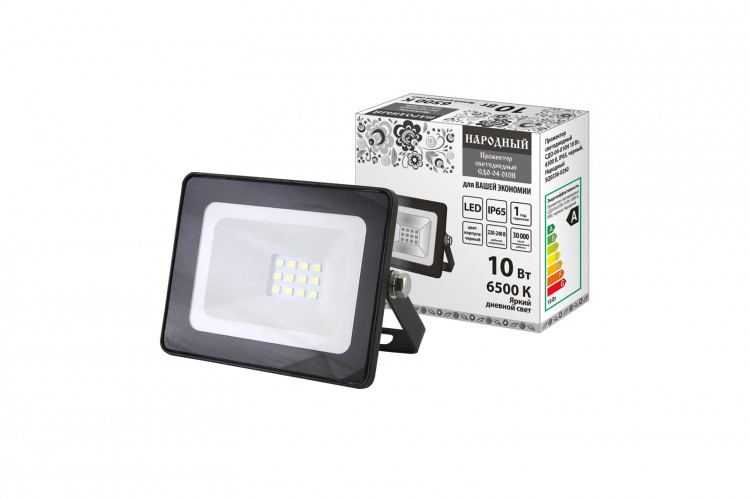Прожектор светодиодный СДО-04-010Н 10 Вт, 6500 К, IP65, черный, Народный | SQ0336-0260 | TDM