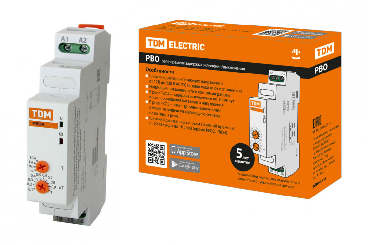 Реле времени РВО4-ВЫКП-0,1с/10мин-8А-24/230В-DIN (зад.выкл.-без пит., 0,1с-10мин, 24-230В AC/DC) | SQ1503-0030 | TDM