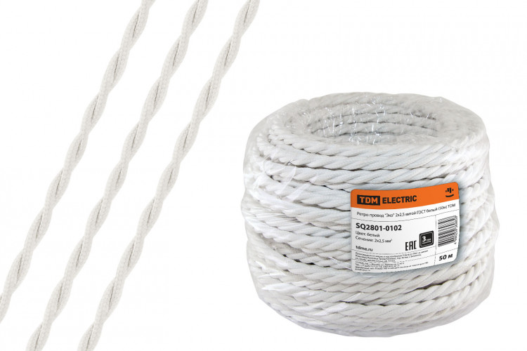 Ретро провод "Эко" 2х2,5 витой ГОСТ белый (50м) | SQ2801-0102 | TDM