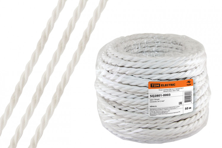 Ретро провод ПВО 3х1,5 витой ГОСТ белый (50м) "Эко" | SQ2801-0003 | TDM
