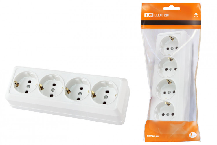 Розетка 4-х местная горизонтальная 2П+3 открытой установки IP20 16A белая "Ладога" | SQ1801-0130 | TDM