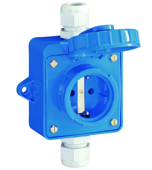 Розетка для монтажа на поверхность IP68, 16A, 2P+E, 250V, цвет синий | 1977751 | ABL Sursum