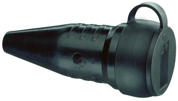 Розетка из натуральной резины с фиксатором для быстрого подключения с манжетой и крышкой, IP44, 16A, 2P+E, 250V, (черный) | 1189290 | ABL Sursum