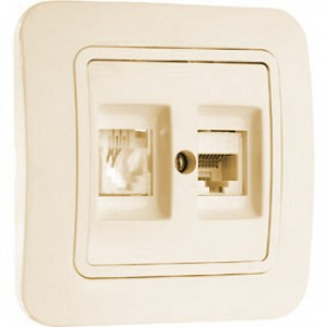 Розетка комп+TF (RJ45 CAT 6+RJ 11) крем. без рамки Zena EL-BI | 609-010300-249 | EL-BI