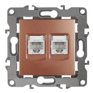 Розетка телефонная двойная 12-3106-14 2XRJ11, медь (10/100/2500) |Б0019348 | ЭРА
