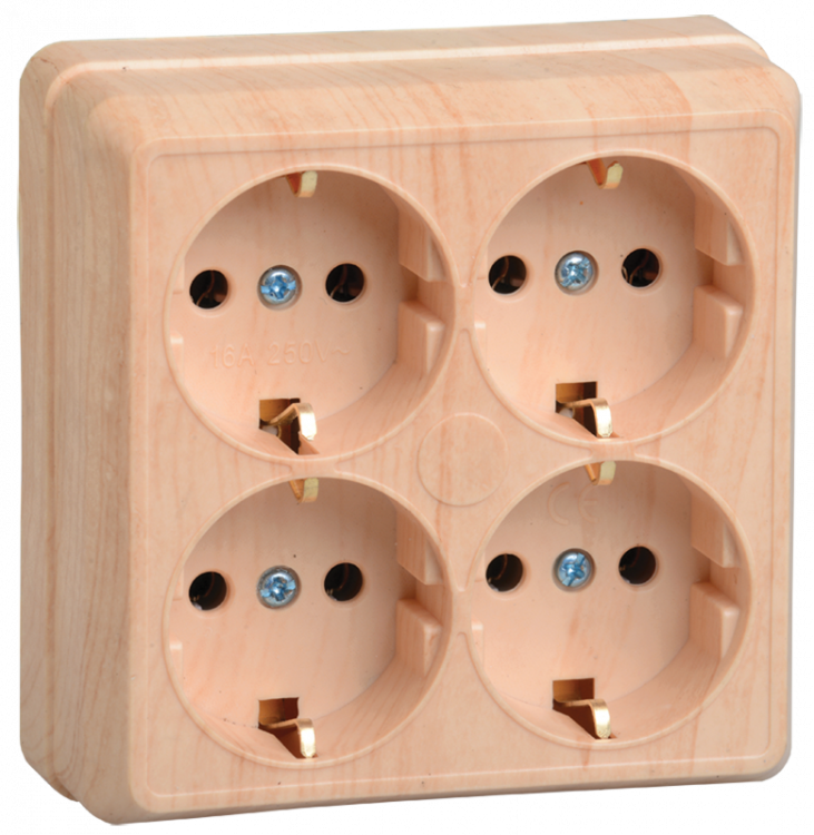РС24-3-ОС Розетка 4местн. с з/к 16А откр.уст. ОКТАВА (сосна) | ERO41-K03-16-DC | IEK
