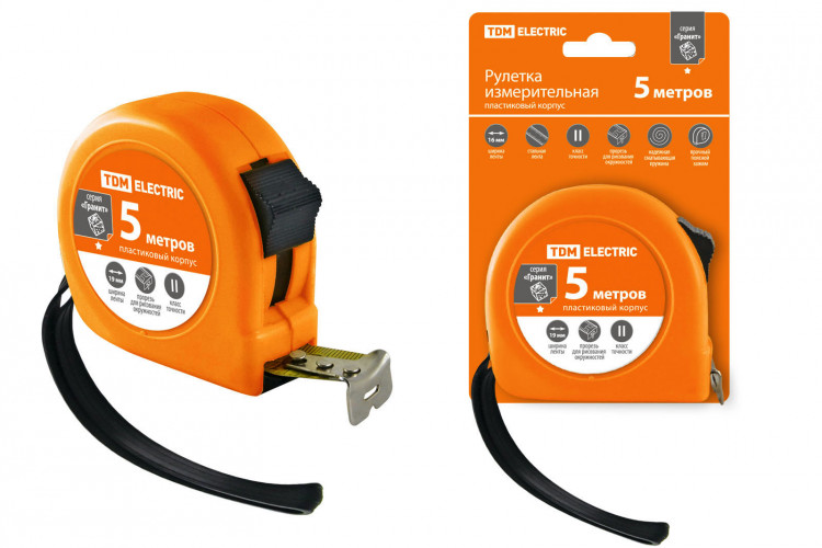 Рулетка, длина 5 м, стальная лента, ширина 19 мм, пластиковый корпус, "Гранит" | SQ1018-0102 | TDM