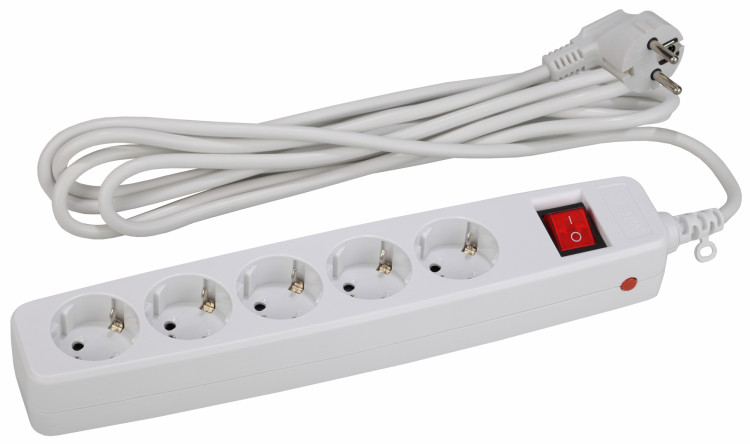 Сетевой фильтр SF-5es-2m-W (белый) с заземл, 3x0.75мм2, со шт, с выкл, 5гн, 2м, кор (20/360) |C0039530 | ЭРА