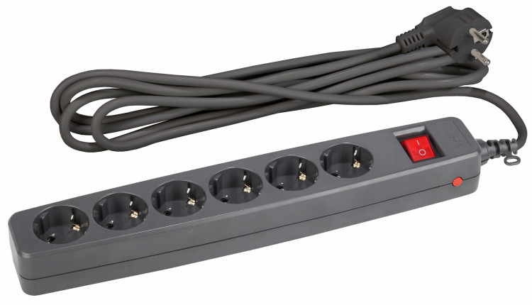 Сетевой фильтр SF-6es-2m-B (черный) с заземл, 3x0.75мм2, со шт, с выкл, 6гн, 2м, кор (20/360) |C0039534 | ЭРА
