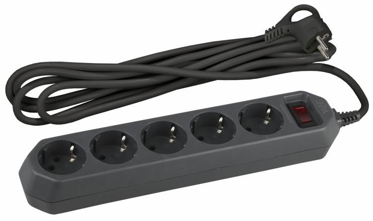 Сетевой фильтр USF-5es-1.5m-B (черный) с заземл, 3x0,75мм2, с выкл, 5гн, 1.5м (20/600) |Б0019032 | ЭРА