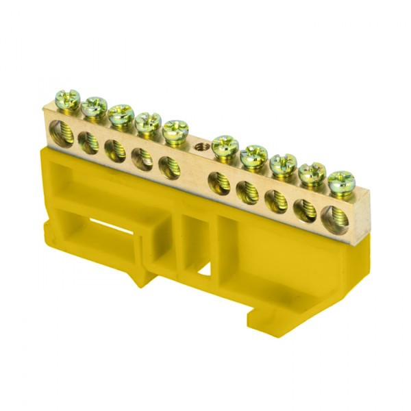 Шина "0" N (6х9мм) 10 отверстий латунь желтый изолятор на DIN-рейку EKF PROxima | sn0-63-10-dz | EKF