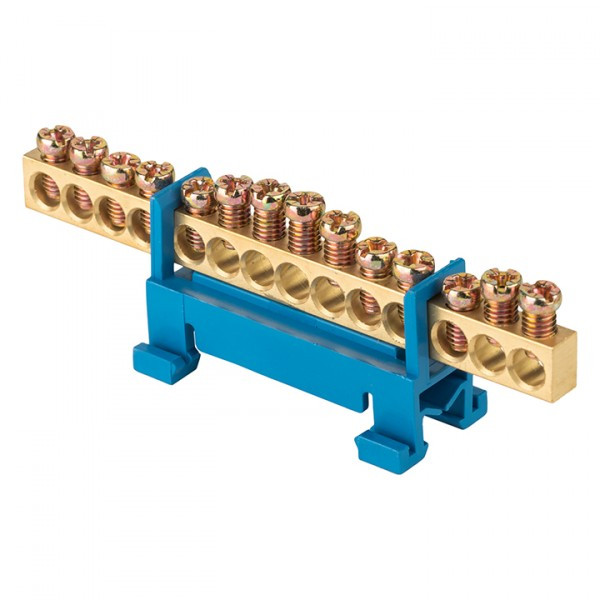 Шина "0" N (6х9мм) 14 отверстий латунь синий изолятор тип "Стойка" на DIN-рейку EKF PROxima | sn0-63-14-sb | EKF