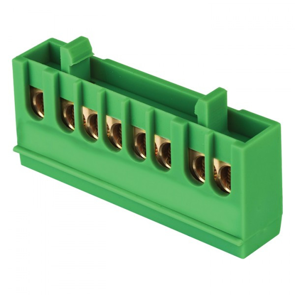 Шина "0" PE (6х9мм) 8 отверстий латунь зеленый изолированный корпус на DIN-рейку розничный стикер EKF PROxima | sn0-63-8-ig-r | EKF