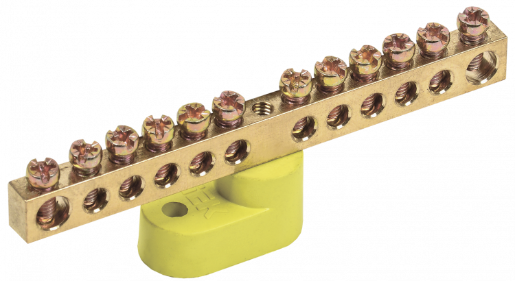 Шина PE "земля" на одном угловом изол ШНИ-6х9-16-У1-Ж | YNN10-69-16C1-K05 | IEK