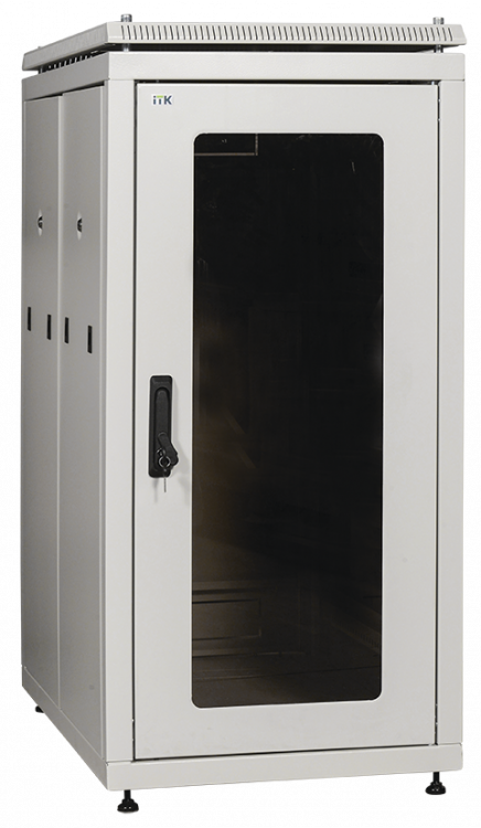 Шкаф сетевой 19" LINEA N 24U 600х1000 мм стеклянная передняя дверь, задняя перфорированная серый | LN35-24U61-GP | ITK