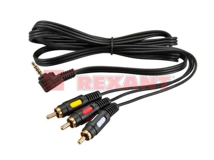 Шнур Стерео 3,5 мм 4C - 3 RCA, длина 1,5 мeтра (GOLD) | 17-4412 | REXANT