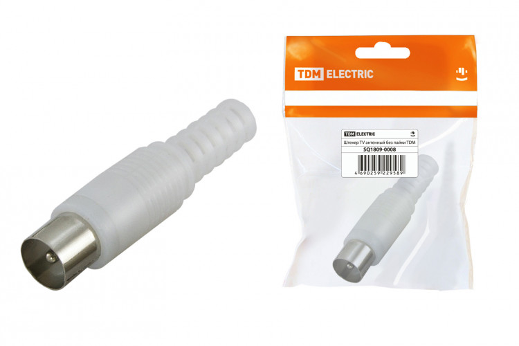 Штекер TV антенный пласт. без пайки белый, инд. упаковка | SQ1809-0008 | TDM