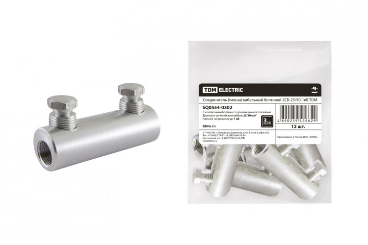 Соединитель (гильза) кабельный болтовой 2СБ-25/50-1кВ | SQ0554-0302 | TDM