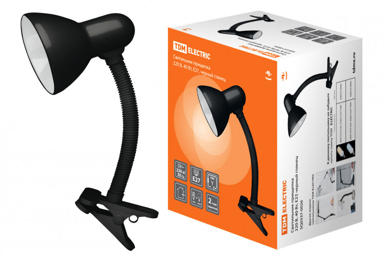 Светильник настольный прищепка 40Вт ЛН/КЛЛ/LED Е27 черный глянец | SQ0337-0026 | TDM