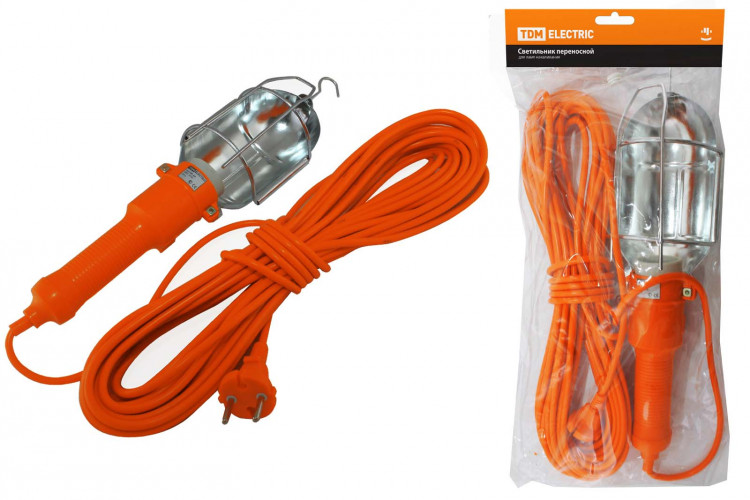 Светильник переносной УП-2Р 60Вт ЛН Е27 IP20 круглая вилка 2Р/5метров | SQ0306-0004 | TDM