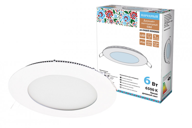 Светильник светодиодный ДВО Downlight Народный СВО (белый) 6Вт 6500К IP20 опал | SQ0329-0245 | TDM