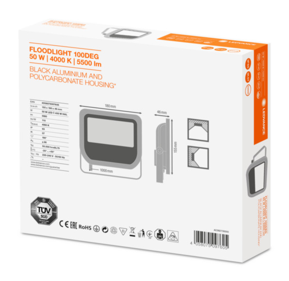 Светодиодный прожектор ДО-50Вт 4000К 5500Лм IP65 черный LEDVANCE | 4058075097605 | LEDVANCE