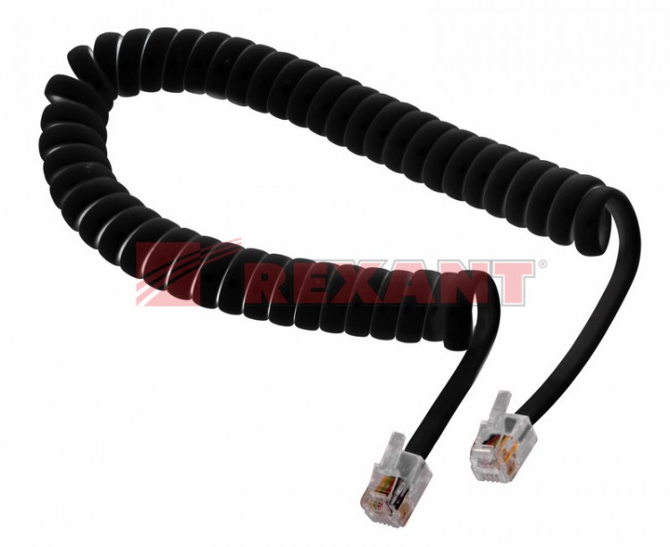 Телефонный шнур, витой трубочный RJ-10(4P-4C), длина 2 метра, черный | 18-2023 | REXANT