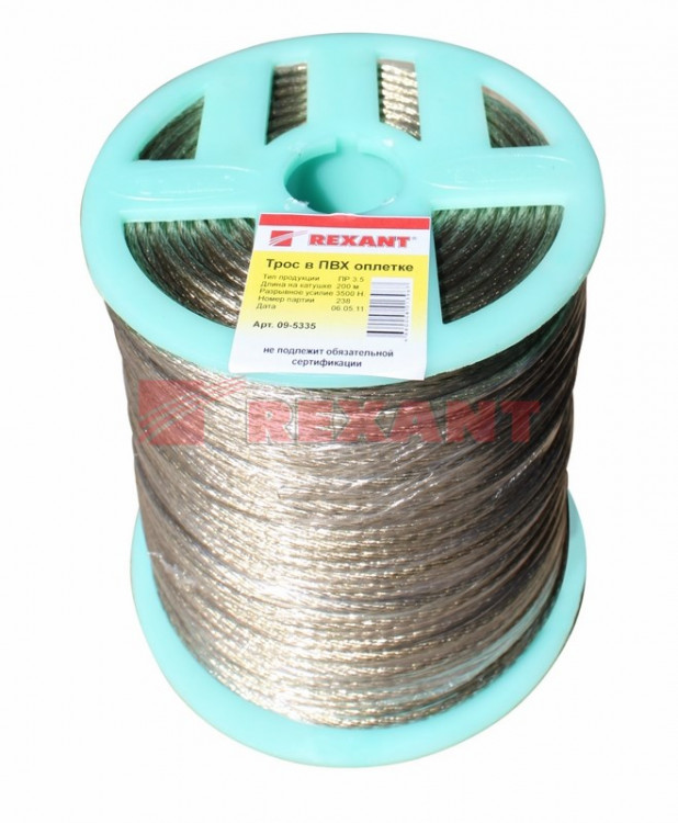 Трос стальной в ПВХ оплетке d=3,5 мм, прозрачный (бухта 200 м) | 09-5335 | REXANT