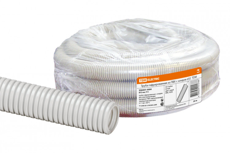 Труба гибкая гофрированная ПВХ 32мм с протяжкой лёгкая (50м) | SQ0401-0004 | TDM