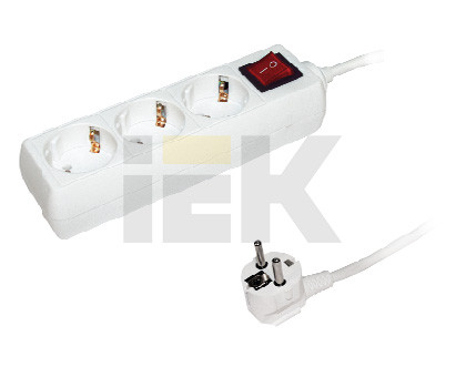 Удлинитель У03К-выкл. 3 места 2Р+PЕ/3метра 3х1мм2 16А/250 ИЭК | WYP10-16-03-03-ZK | IEK