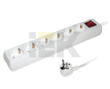Удлинитель У06К-выкл. 6 мест 2Р+PЕ/5метров 3х1мм2 16А/250 ИЭК | WYP10-16-06-05-ZK | IEK