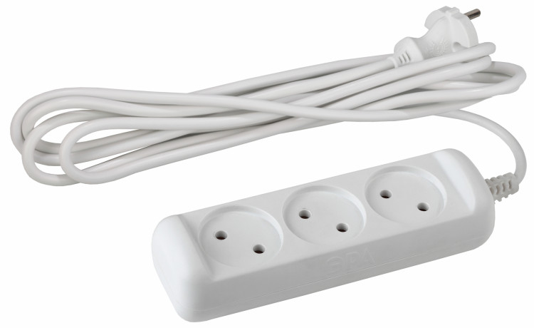 Удлинитель UX(6)-3-5m без зазeмл., 2х0.75мм2, ПВС, 3гн, 5м (20/600) |Б0028351 | ЭРА