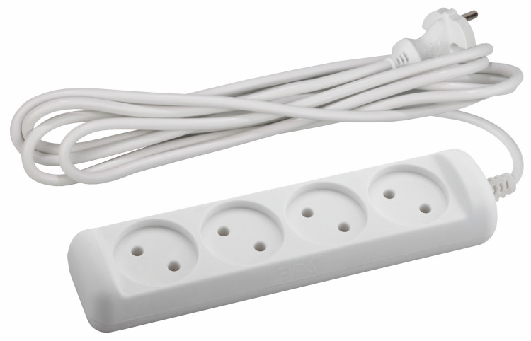 Удлинитель UX(6)-4-5m без зазeмл., 2х0.75мм2, ПВС, 4гн, 5м (20/600) |Б0028353 | ЭРА