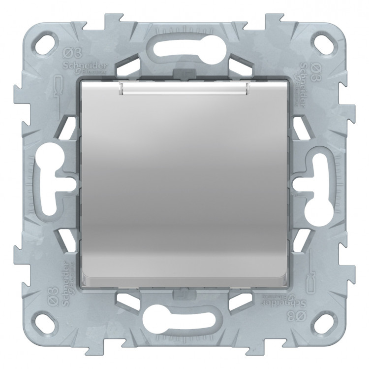 Unica New Алюминий Розетка с/з со шторками, с крышкой, 16А, 250В, IP40 | NU503730TA | Schneider Electric