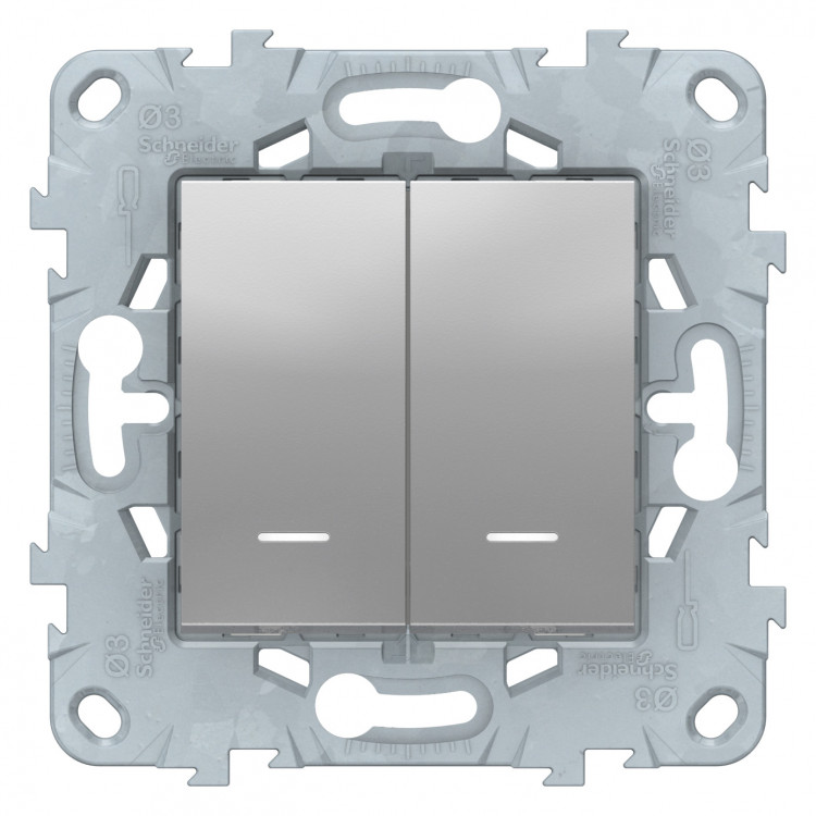 Unica New Алюминий Выключатель 2-клавишный, 2 мод., с подсветкой, 2 х сх. 1а | NU521130N | Schneider Electric