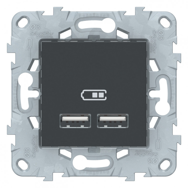 Unica New Антрацит Розетка USB, двойная, 5 В / 2100 мА | NU541854 | Schneider Electric