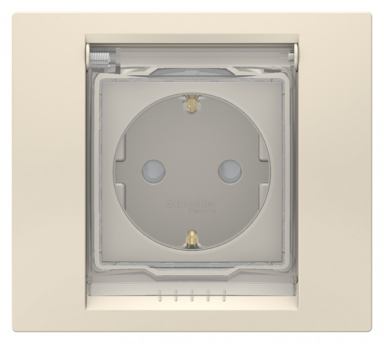 Unica New Бежевый Розетка с/з со шторками, с крышкой, IP44 | NU003744 | Schneider Electric