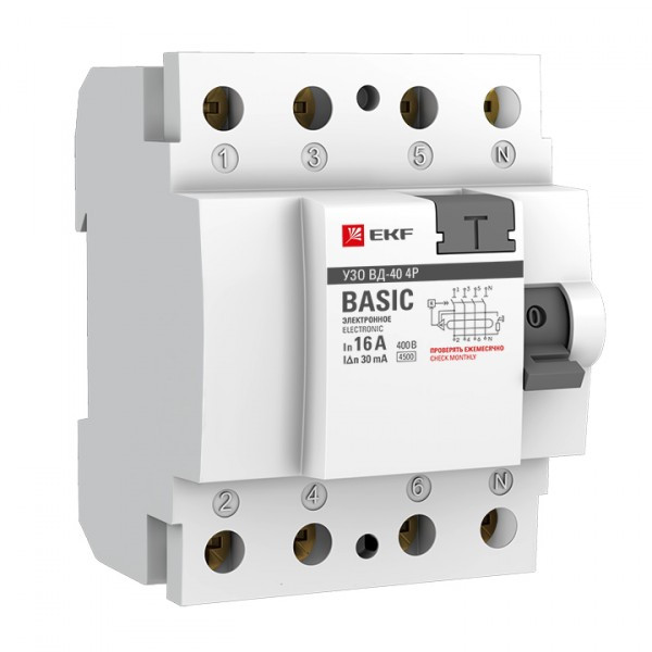 Устройство защитного отключения УЗО ВД-40 4P 63А/300мА (электронное) EKF Basic|elcb-4-63-300e-sim|EKF